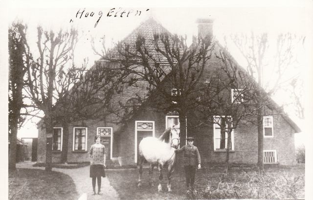 0594 Nieuwehorne, Schoterlandseweg 17 Hoog Elten. Jaar ???. Van links naar rechts: Meintje Hepkema-Heida en Koene Heida. Gerelateerde Afbeeldingen: