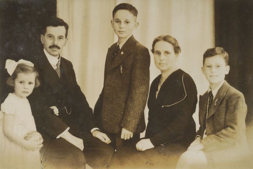 4304 V.l.n.r.: Adelheid, dominee Pijnacker-Hordijk, Arie, mevr. Pijnacker-Hordijk en Adolf. Gerelateerde Afbeeldingen: