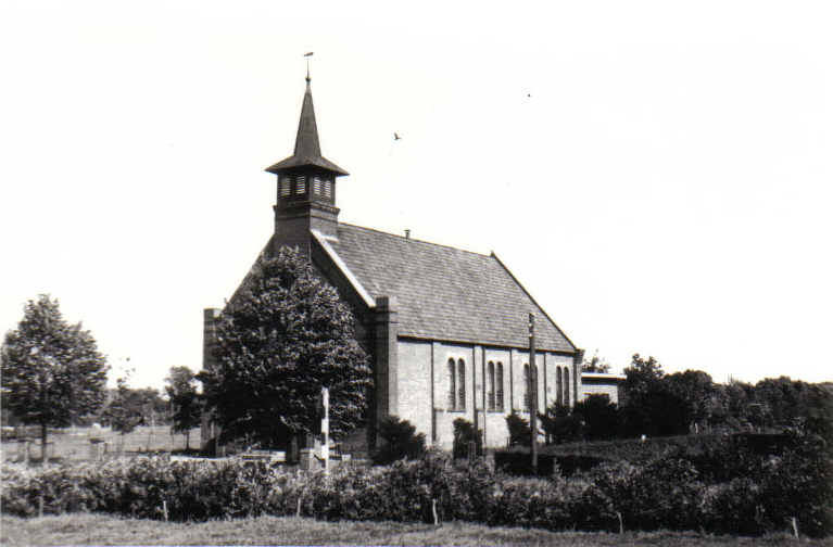 0240 Oudehorne, Gereformeerde Kerk aan de Schoterlandseweg. Met ernaast aan de westzijde de boerderij van Fedde Zwanenburg. Gerelateerde Afbeeldingen: