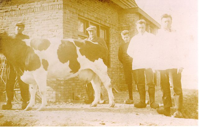 2057 Roel Sj. Dijksma, met zijn fiets met korf, bedoeld voor het vervoer van kleinvee. Gerelateerde Afbeeldingen: