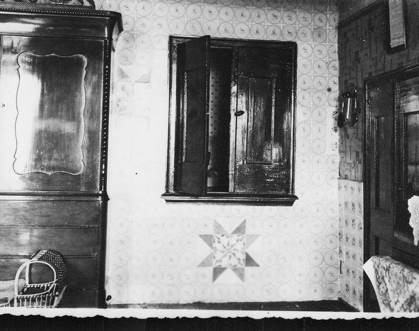 0580 Nieuwehorne, Schoterlandseweg 21. Boerderij van familie de Haan. Kamer met bedstee van Sipke-Durk de Haan. Jaar ???.