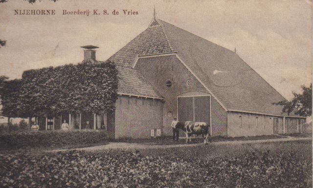 Boerderij van K.S. de Vries 0384 Nieuwehorne, Schoterlandseweg 107. Boerderij van K.S. de Vries. Poststempel vermoedelijk van 1916. Personen ??? Gerelateerde Afbeeldingen: