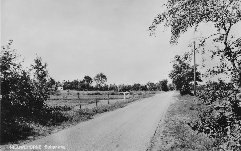 Nieuwehorne, Buitenweg 7707 Foto genomen in westelijke richting, ter hoogte van huisnummer 46. Links is het boerderijtje van de Jansma’s zichtbaar. Gerelateerde Afbeeldingen: