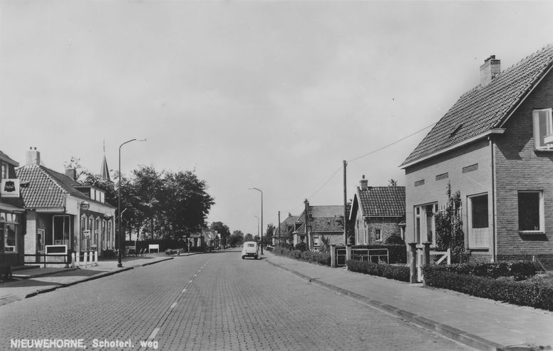 Nieuwehorne dorpsgezicht 7610 Schoterlandseweg, met links de manufacturenwinkel van Peereboom en Café Schreur. Daarachter is de kerk zichtbaar. Gerelateerde Afbeeldingen: