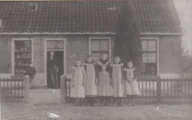 0531 Winkeltje. V.l.n.r.: Jan Faber, Thijs Faber, Geertje Jelsma, Liesbeth Faber, Wietske Kleistra, Trijntje Jelsma, Richtte Jelsma.