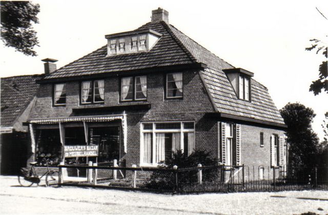 Nieuwehorne. Schoterlandseweg 32 0535 Brouwers Bazar. Winkel in galanterieën. Later Teunissen, nog later Jongbloed Gerelateerde Afbeeldingen:
