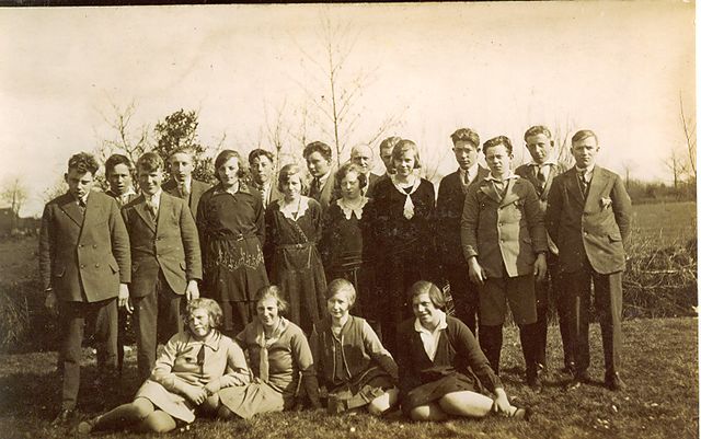 3050 Staand (v.l.n.r.): Jan Schreur, Geert de Jong, Bouwe Stoker, Anne Schokker, Janke van Houten, Arend Dijksma, Marie de Beer, Lammert Postma, Elske Schreur, Jan van der Laan (dansleraar), Pieter Blokstra, Hinke Duursma, Romke van der Meer, Piet Schreur, Tjeerd Bosma en Kerst de Vries. Voor (v.l.n.r.): Meintje Kleistra, Froukje Kramer, Froukje Heida en Hinke van Oosten.