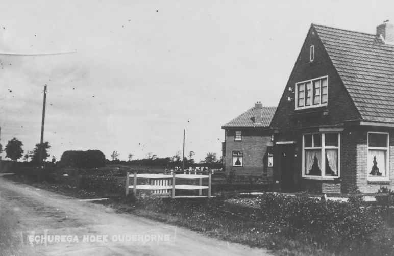 Oudehorne, “De Nieuwe Wijk” 7783 Het kruispunt van de Schoterlandseweg en de Oldeberkoperweg, met op de hoek de woning van Jouke de Vries (van J&G). Gerelateerde Afbeeldingen: