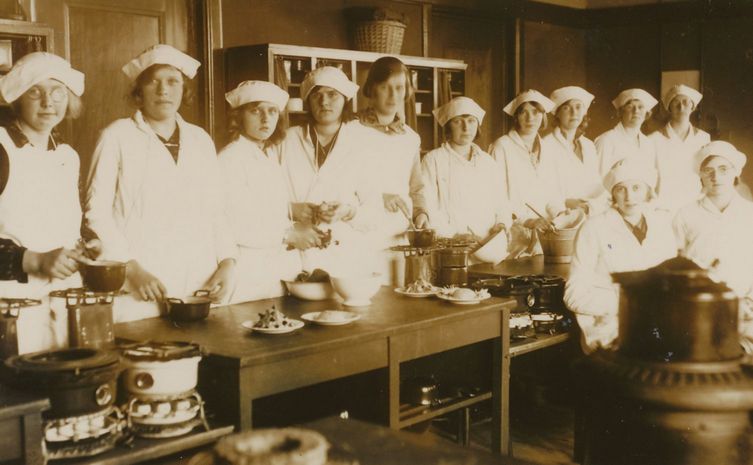 5261 Huishoudschool Oldeberkoop. Jaar ??? Staand (v.l.n.r.): Jantje Lukkes, Grietje Siegersma, Trijntje de Vries, Trijntje de Vent, Hinke Duursma, Cornelia Houtman, Alie Pen, Akke Agter, Hinke Wiegersma en juffrouw Sienema. Voor (v.l.n.r.): Tiete Boukema en Aukje van der Honing.